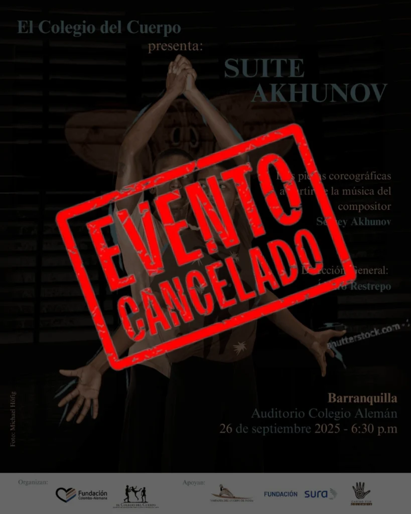 Aviso importante: Cancelación del espectáculo Suite Akhunov La Fundación Colombo Alemana de Barranquilla informa que la presentación de Suite Akhunov del Colegio del Cuerpo, prevista para el viernes 26 de septiembre en el Auditorio del Colegio Alemán, ha sido cancelada. Reconocemos la expectativa generada en torno a este encuentro cultural y agradecemos el interés de […]
