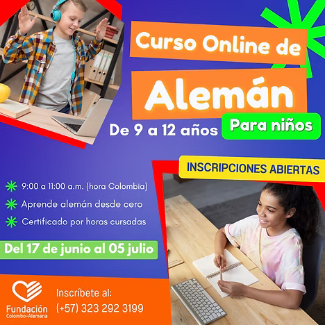 ¿Tienes entre 9 y 12 años? 🌟 ¡Vive una experiencia inolvidable aprendiendo alemán y conectando con la rica cultura de Alemania estas vacaciones, desde la comodidad de tu hogar! 🏠💻 Nuestro curso online de alemán en la FCAB es la oportunidad perfecta para divertirte, hacer nuevos amigos y descubrir un mundo lleno de sorpresas. 🎉👫