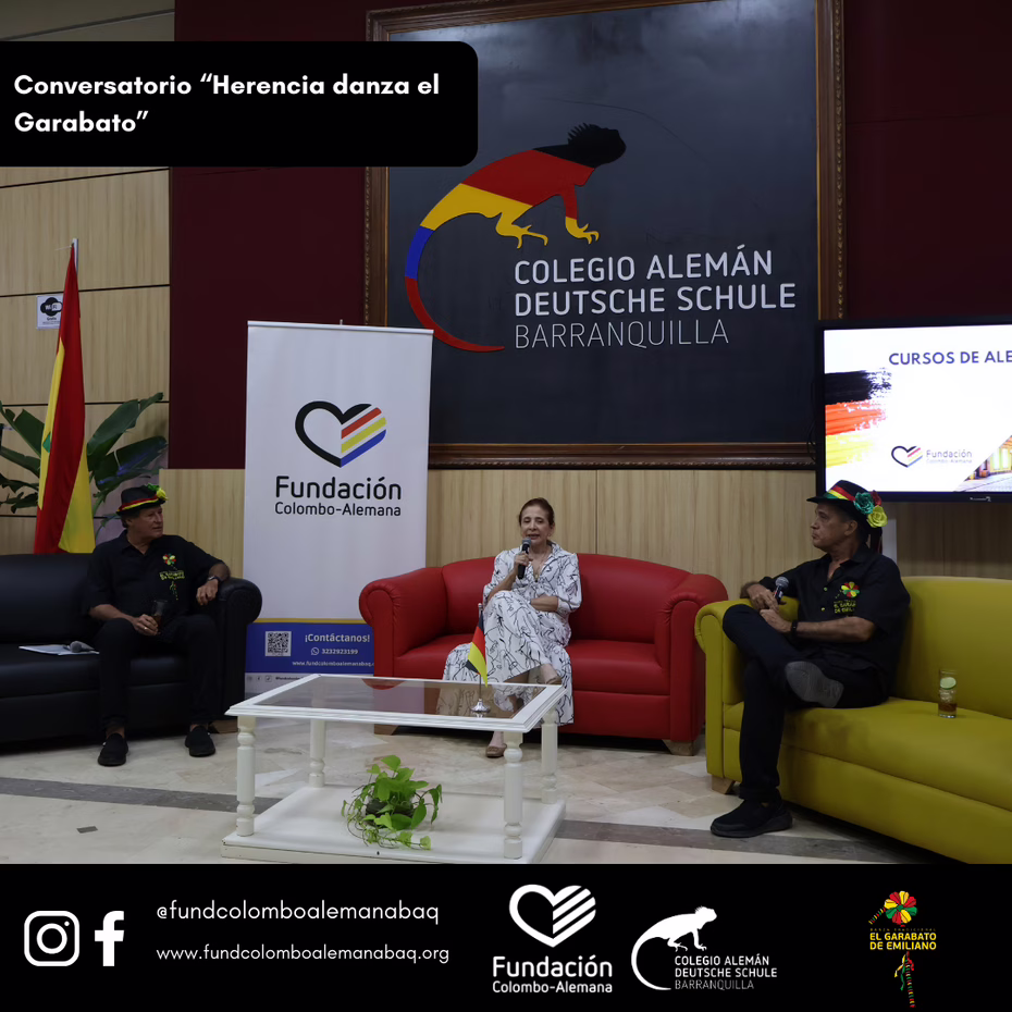 El pasado martes, 23 de enero , se llevó a cabo el fascinante conversatorio “Herencia danza el Garabato” en el foyer del auditorio del Colegio Alemán de Barranquilla, gracias a la colaboración entre la Fundación Colombo-Alemana de Barranquilla y el mencionado colegio. Este significativo evento fue guiado por Julie Henríquez de Donado, respetada coreógrafa, diseñadora