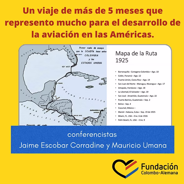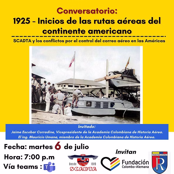 La Fundación Colombo-Alemana de Barranquilla, La Sociedad Colombo-Alemana de Transportes Aéreos y la Reserva Naval de Colombia, te invitan a participar del conversatorio: “1925-inicio de las rutas aéreas del continente americano”. Los conferencistas Jaime Escobar Corradine, Vicepresidente de la Academia Colombiana de Historia Aérea y Mauricio Umana, miembro de la Academia Colombiana de Historia Aérea,