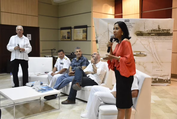 Con gran éxito se celebró hoy en el Colegio Alemán el conversatorio para inaugurar la exhibición de las piezas del vapor Prinz August Wilhelm. Contamos con la participación del Contralmirante Andrés Bermúdez Arciniegas, Subdirector de la Escuela Naval de Suboficiales ARC “Barranquilla”, el Capitán de Navío Hermann León, director del CIOH, el Sr. José Manuel Espinosa, director del departamento de historia de la Universidad del Norte y Enrique Yidi, coautor del libro “De la gloria al olvido”.