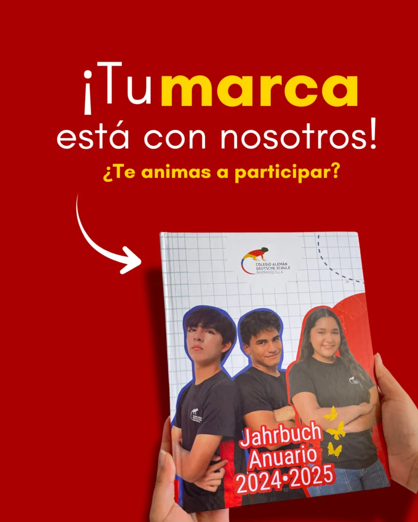 Por ello, abrimos la convocatoria para que empresas y emprendimientos hagan parte del Anuario Escolar – Jahrbuch 2025–2026, una publicación exclusiva que se ha consolidado como una pieza de colección dentro de la comunidad del Colegio Alemán de Barranquilla. Este anuario no solo recoge momentos memorables del año académico, sino que también se convierte en una vitrina estratégica para marcas que desean posicionarse en un entorno de alto valor.