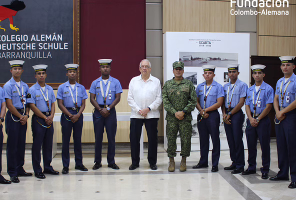 El pasado jueves 29 de octubre la Fundación Colombo-Alemana de Barranquilla recibió a los Grumetes de la escuela naval de suboficiales ARC Barranquilla visitaron el museo de SCADTA (Sociedad Colombo-Alemana de Transportes Aéreos), asombrados por la historia, imágenes, datos y recuerdos de las glorias de quienes volaban en el pasado. Nos acompaño el Capitán de Fragata Carlos Uribe quien se manifestó muy contento por la experiencia.