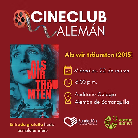 La Fundación Colombo-Alemana de Barranquilla junto al Goethe-Institut Kolumbien- ,te invitan a la proyección de la película “Als wir träumten” (2015) por Andreas Dresen. El encuentro se llevara a cabo el próximo miércoles, 22 de marzo a las 6:00 p. m., en el auditorio del Colegio Alemán de Barranquilla. La entrada es gratuita hasta completar aforo.
